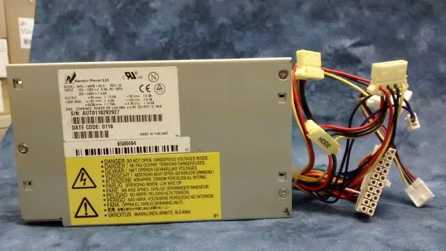 6500464, Gateway 145W PSU, AC In & 115/230V Slide Switch, 6cm Internal Fan, 2×10-pin P1 on 8cm Cable, 2-wire 3-pin P7 on 14cm Cable, 2 HD/CD on 11cm Cable, 1 HD/CD on 11cm Cable, 1 HD/CD & 1 FD on 15cm Cable, +3.3V & +5V Combined 90W Max, +3.3V 14A, +5V 13A, +12V 4A, -5V 0.3A, -12V 0.3A, +5Vsb 1.7A, 98/102mm W x 72mm H x 169mm D, Refurb, 120 Days Warranty, SRP £call In Stock!
