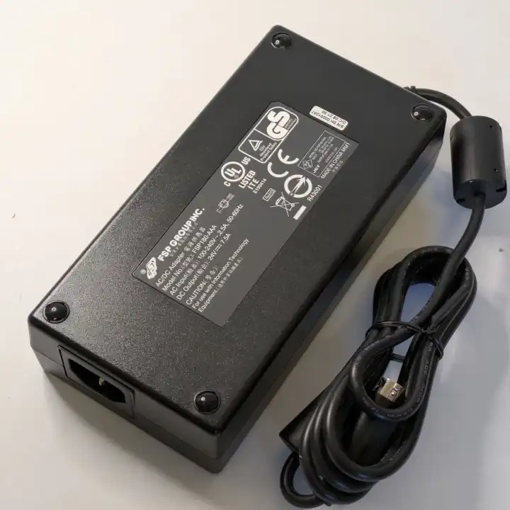FSP180-AAA, 9NA1800400, 30” TFT TV 180W AC Adapter, 24V DC 7.5A, 4-pin mini-DIN, Flat Edge Uppermost, Left Hand Pins V+, Right Hand Pins GND, Upper Pins 4mm Apart, Lower Pins 3mm Apart, 100-240V AC, IEC320 C14, SRP £call In Stock!