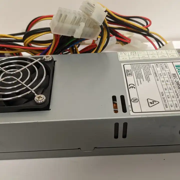HEC-200SR-AT, HEC 200W flexATX 12V, 100-240V 47-63Hz AC In & 3 Screw Holes on Back Of Case, 6cm Internal Fan, 2×10-pin on 36cm Cable, 2×2-pin on 42cm Cable, 2 HD/CD on 38cm Cable, 1 HD/CD & 1 FD on 21cm Cable, +3.3V & +5V Combined 71W Max, +3.3V 16.7A, +5V 12A, +12V 10A, -12V 0.3A, +5Vsb 1.5A, 81mm W x 43mm H (plus 10mm for Fan) x 190mm D, Refurb, 120 Days Warranty, SRP £call In Stock!