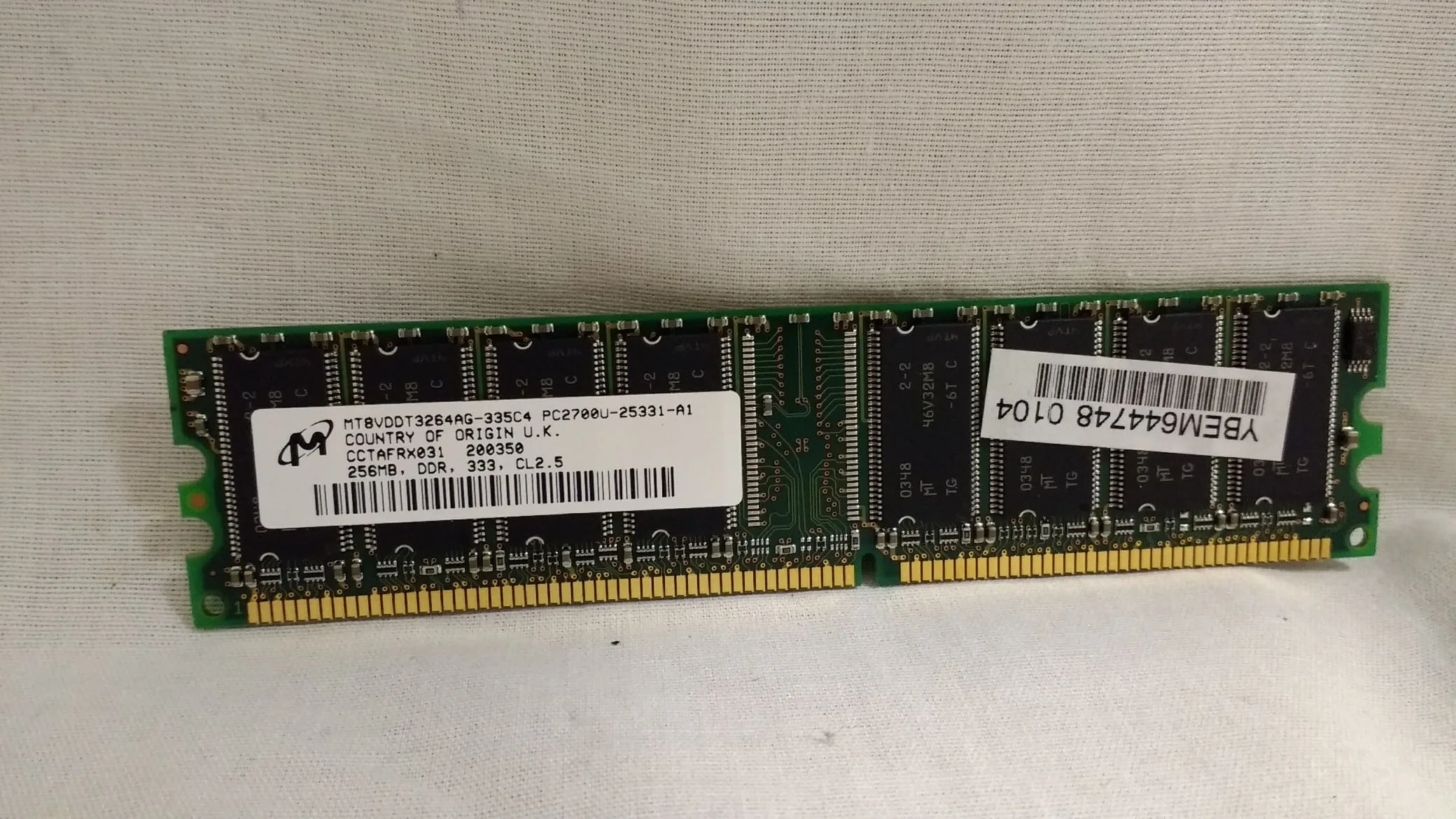 MT8VDDT3264AG-335C4, FSC Scenic P300, NEC PowerMate VL4 ND511197501, Packard Bell IMEDIA 1307 256MB, DDR, 333, CL2.5, PC2700U-25331-A1, 8x 46V32M8-6T Chips, Single Sided, Refurb, 120 Days Warranty, SRP £call In Stock!